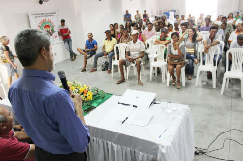 O ato de assinatura foi realizado no Auditório do Sindicato dos Trabalhadores da Agricultura Familiar (SINTRAF) com a presença de agricultores familiares e gestores públicos.
