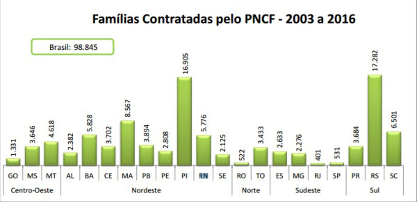 De acordo com o relatório do MDA sobre o PNCF no Rio Grande do Norte, o número de famílias contratadas de 2003 a 2016 já são 5.776.