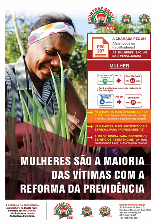 No dia 8 de março, Dia Internacional da Mulher, as mulheres agricultoras familiares tomarão as ruas do Brasil em protesto a Reforma da Previdência Social