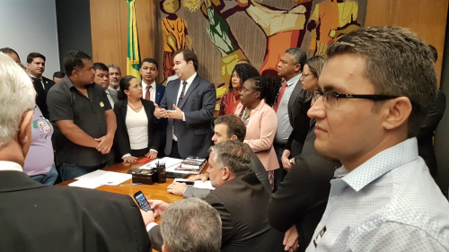 A Contraf Brasil participou da entrega da ‘Carta da Terra’ ao presidente da Câmara Rodrigo Maia, construída no Seminário Terra e Território: Diversidades e Lutas, pelos representantes de diversos movimentos sociais, entre os dias 6 e 8 de junho, em Guararema (SP).