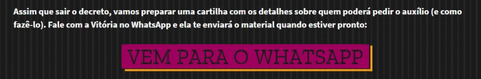 Atenção no site procure por essa imagem e clique no “VEM PARA O WHATSAAP” para receber a cartilha com os detalhes sobre como solicitar o auxílio.