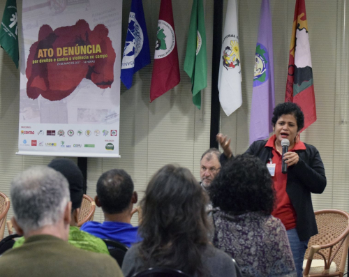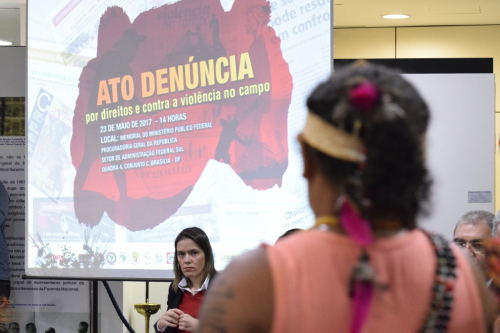 Nesta terça-feira, 23 de maio, os povos do campo, da floresta e das águas, durante o Ato de Denúncia por direitos e contra a violência no campo pediram socorro as autoridades presentes. “Estamos aqui pedindo que vocês possam ter um olhar mais sensível os problemas do campo. Quando eu chego aqui e digo que sou uma mulher negra quilombola muita gente acha bonito, mas quando reivindico o meu direito ao território eu passo a incomodar. Sou caçada por pistoleiros, ameaçada de perder minha cabeça, porque é isso que escutamos. Não é apenas estas lideranças que são ameaçados. Além disso, os programas de proteção protegem cada vez menos e as vezes temos que fugir porque nos sentimos mais ameaçados. A violência se traduz na negação dos títulos dos nossos territórios, resolver isso seria uma forma de amenizar estes conflitos”, contou Fátima Barros, do Quilombo Ilha de São Vicente (Tocantins).