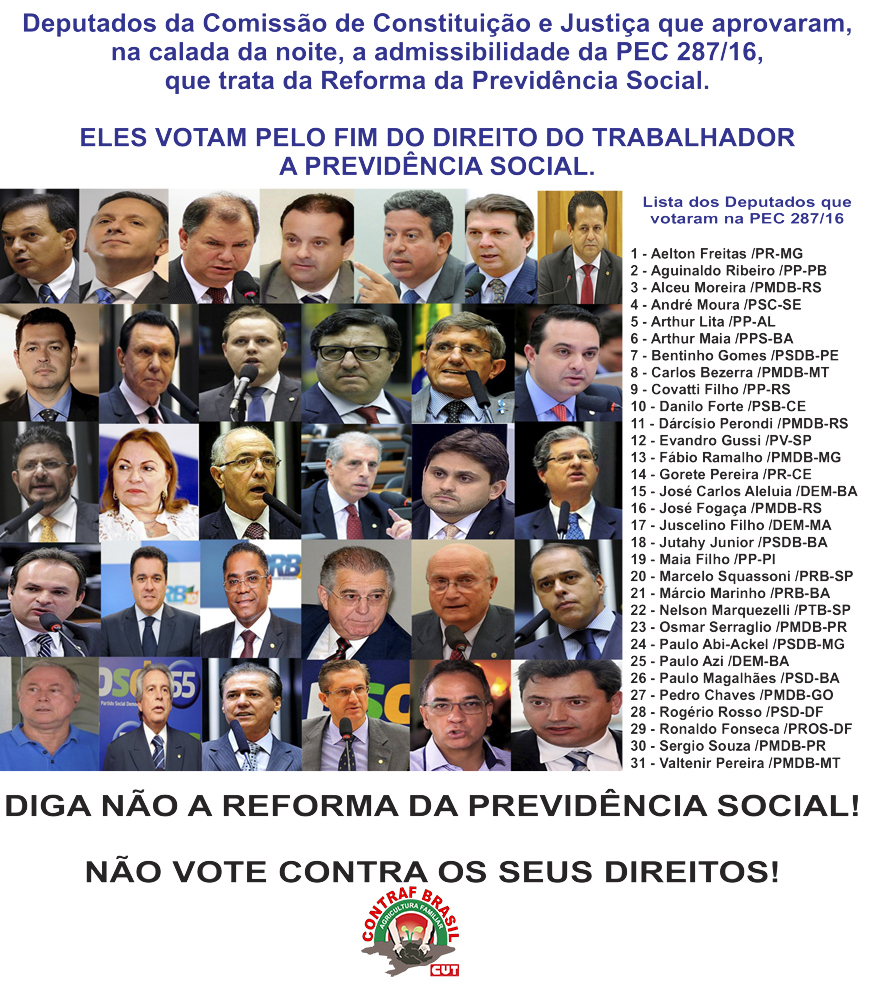 Campanha contra Reforma da Previdência Social Publicado em: 13/02/2017 Publicado em: 13/02/2017 Enviar por e-mail A+ +/- A- Compartilhe Facebook Twitter Google Plus Whatsapp