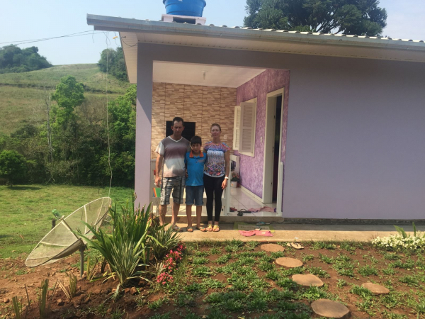 A Família Deonh em frente a casa financiada pelo MCMV Rural
